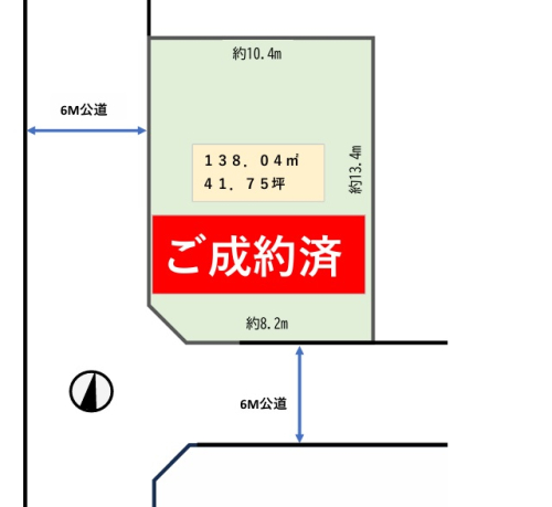 静かな住宅地内、6m公道面の角地にお好きな建物をどうぞ!!