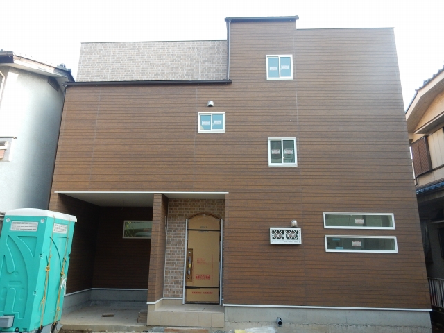 ファインメイド・プラスワンリビング 春日部市豊町5丁目 足場が外れました! 木目×レンガ調の外観 玄関はおしゃれなアール型ドア リビングダイニング アクセントクロスをちょっとだけご紹介…♪