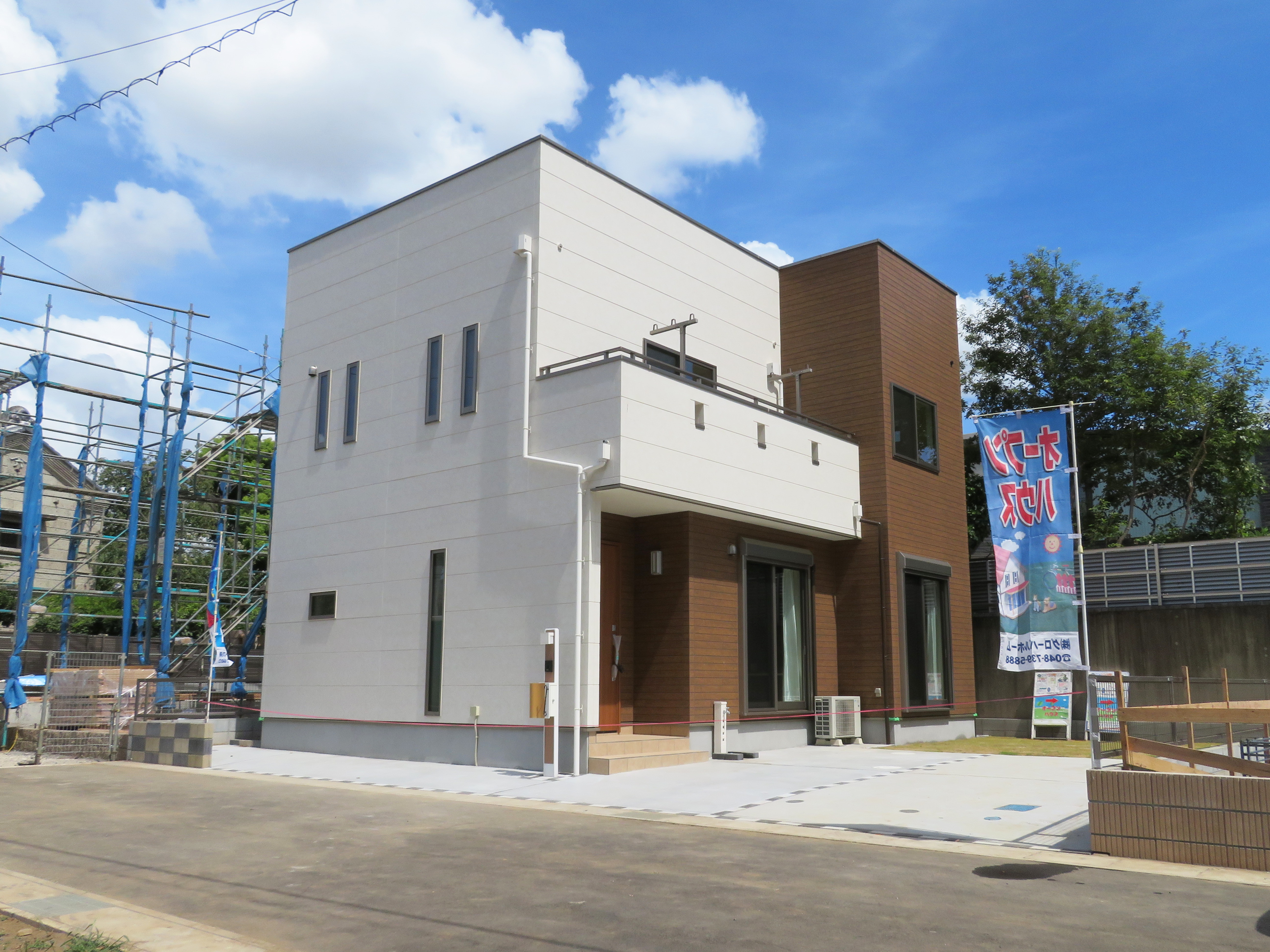 屋上庭園付き&まるごと制震装置の新築住宅 ~4LDK+カースペース並列2台付きプラン~ ブラウンウッドカラーをベースに、ホワイトのカラーをアクセントとした外観です! 南側が道路の為、日当たり良好 リビング南側に窓を設けてありますので、 日当たりの良さを実感していただけます 外観・内観と...