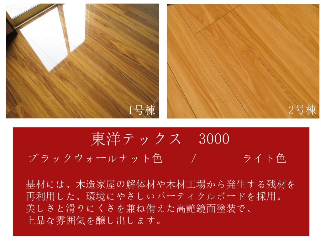 1号棟では、パティナウッドをメインに、アクセントとしてリオビスタ、