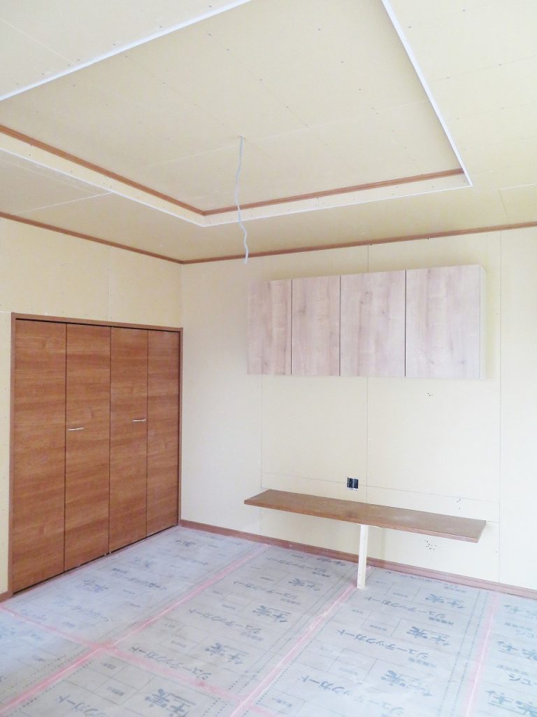 前回お伝えしたアッパーキャビネットの下には、TVカウンターが付きました!